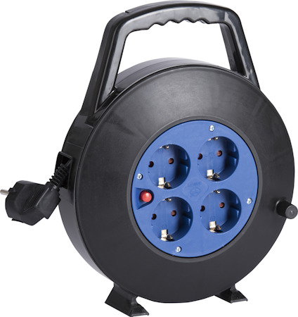 Stående kabelrulle med bärhandtag. Liten och smidig vinda avsedd för inomhusbruk. Kabelrullen är försedd med termosäkring som bryter strömmen om kabelrullen överhettas. Vevknoppen på kabelrullen gör det enkel att rulla tillbaka kabeln. Vinklad stickpropp. Max belastningsförmåga som anges på artikeln avser helt inrullad respektive helt utrullad kabel.