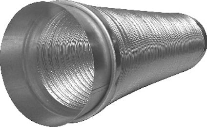 Typgodkänd som anslutning mellan spisfläkt/spiskåpa och imkanal. Lämplig även för allmän ventilation. Axiellt ihoptryckbar 4:1. Typgodkänd: SITAC nr 3685/83. Material: Korrugerat aluminiumband. Temperaturområde: Upp till +250°C.