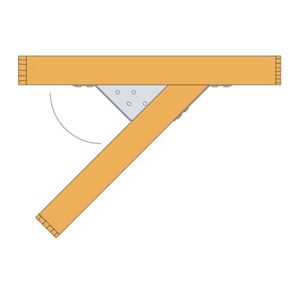 Balksko ET260 med 45° horisontell vinkling. Balksko ET260är lämplig för sammanfogning av balkar med 45° vinkel, höger eller vänster (horisontalt).