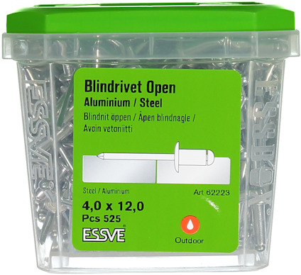 ESSVE Öppen blindnit i alu/stål med kullrigt huvud är ett mycket användbart fästelement som ger konstruktörer stora variationsmöjligheter i produktutformning och materialval. Läs mer