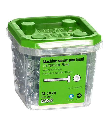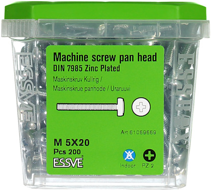 ESSVE Maskinskruv MRX används vid alla typer av montage där en helgängad millimeterskruv behövs. Skruven är tillverkad av härdat stål i kvalité 4.8 med blankförzinkad ytbehandling. Skruven är försedd med rund skalle med PH bitsfäste. DIN 7985. För att ett skruvförband ska fungera riktigt och kunna motstå stora statiska eller växlande krafter under lång tid måste skruvarna förspännas, t.ex. genom åtdragning med ett givet moment. Förspänningen ska normalt hållas på en sådan nivå, att den sammansatta spänningen i skruven inte överskrider skruvmaterialets sträckgräns. För att montering av en maskinskruv klass 4.8 ska vara korrekt bör en planbricka med minst HV140 hårdhet användas.