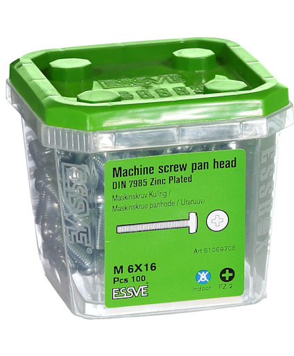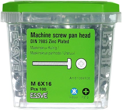 ESSVE Maskinskruv MRX används vid alla typer av montage där en helgängad millimeterskruv behövs. Skruven är tillverkad av härdat stål i kvalité 4.8 med blankförzinkad ytbehandling. Skruven är försedd med rund skalle med PH bitsfäste. DIN 7985. För att ett skruvförband ska fungera riktigt och kunna motstå stora statiska eller växlande krafter under lång tid måste skruvarna förspännas, t.ex. genom åtdragning med ett givet moment. Förspänningen ska normalt hållas på en sådan nivå, att den sammansatta spänningen i skruven inte överskrider skruvmaterialets sträckgräns.