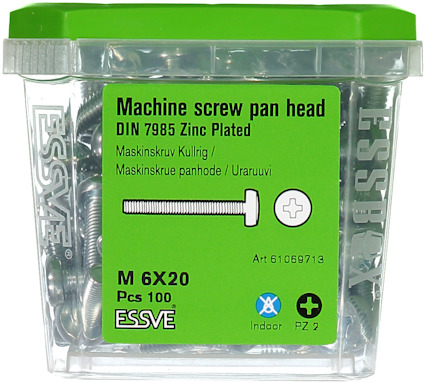 ESSVE Maskinskruv MRX används vid alla typer av montage där en helgängad millimeterskruv behövs. Skruven är tillverkad av härdat stål i kvalité 4.8 med blankförzinkad ytbehandling. Skruven är försedd med rund skalle med PH bitsfäste. DIN 7985. För att ett skruvförband ska fungera riktigt och kunna motstå stora statiska eller växlande krafter under lång tid måste skruvarna förspännas, t.ex. genom åtdragning med ett givet moment. Förspänningen ska normalt hållas på en sådan nivå, att den sammansatta spänningen i skruven inte överskrider skruvmaterialets sträckgräns.