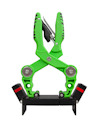 Gröna monteringsverktyg med svarta och röda detaljer, handtag och klämmor synliga.
