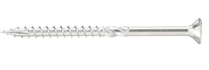Träskruv rostfri A4 används i krävande miljöer utomhus. Skruven har TX-spår för stadigt grepp samt S-spets som motverkar sprickbildning.