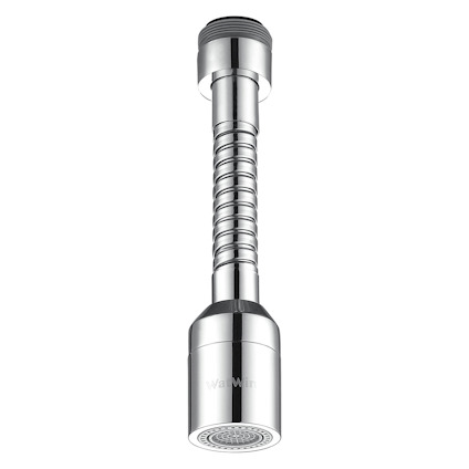 Strålsamlare med slang för köksblandare. Passar utvändig gänga M22x1 mm och invändig gänga M24x1 mm. WatWin PREMIUM ECO: Armaturoberoende produkt av hög kvalitet, reducerar vatten- och energiförbrukningen på existerande tappställen med upp till 60 %. Constant Water Flow: Förbättrad vattenkomfort - konstant vattenflöde oavsett högt eller lågt vattentryck. Upplev en kraftig strålbild med optimal sköljkomfort. Kalkavvisande innerdelar. Shower Spray: Växla mellan traditionell stråle och duschstråle genom skonsamt vridreglage.