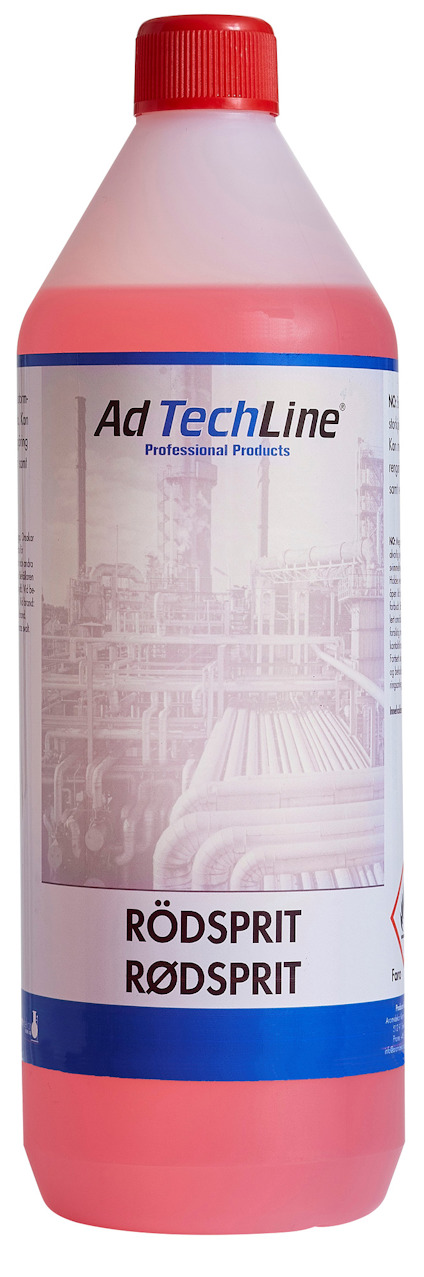 AdTechLine® Rödsprit. Bränsle till spritkök och stormkök. Brinner utan att sota. Kan också användas för rengöring av vindrutor och speglar samt för fläckborttagning.