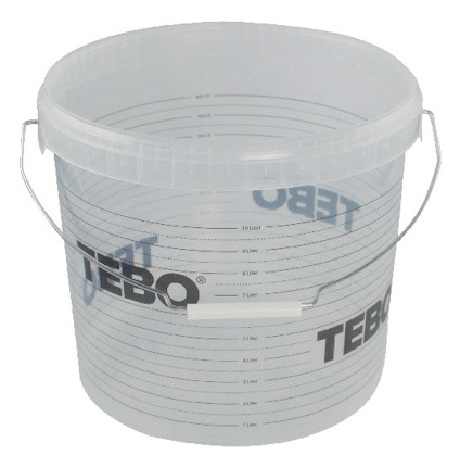 Mäthink Tebo. Transparent hink av polypropen plast för vatten till fix, fog och spackel. Försedd med 3,2 mm bygel, plastgrepp och tydlig litergradering. Läs mer