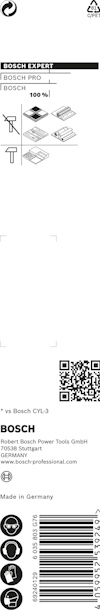 Upp till 5 gånger större precision än med Bosch CYL-3 kakelborr - På moderna byggarbetsplatser behöver du kunna arbeta i många olika material, och du vet aldrig vad du ska borra i härnäst. Det kan vara svårt och tidskrävande att hitta rätt borr – om du inte har valt EXPERT MultiConstruction borr, alltså. Den här mycket mångsidiga borren kan borra med precision i hårda material som granit, utan att sladda – tack vare den skarpa spetsen och en avancerad geometrisk design. Tillverkad av optimerad hårdmetall med vår finslipande tillverkningsteknik. Den kan även hantera betong, tegel, mjukt kakel, trä och metall. Den gör alltid ett professionellt jobb – oavsett material. Bosch EXPERT CYL-9 MultiConstruction cylinderborr är det borr som alltid bör ingå i din verktygslåda: Då fastnar du aldrig mitt i ett jobb eller tvingas ödsla tid på att leta efter rätt borr. Cylindriskt skaft som passar till trebackschuck.