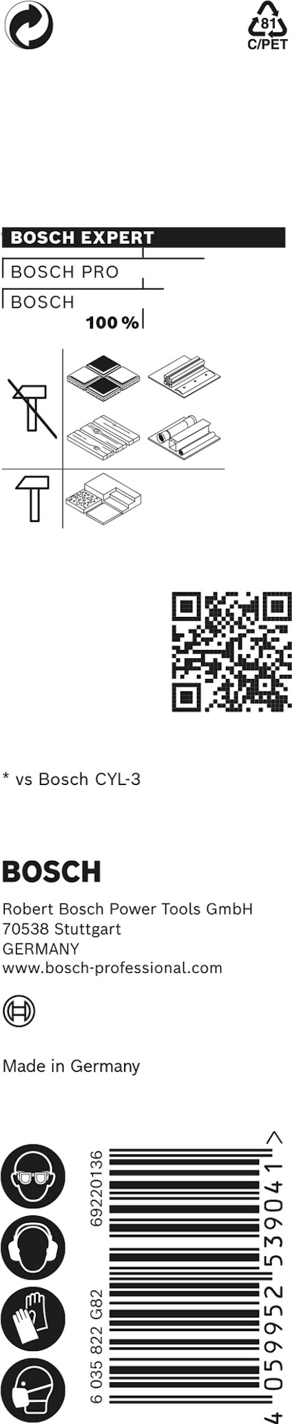 Upp till 5 gånger större precision än med Bosch CYL-3 kakelborr - På moderna byggarbetsplatser behöver du kunna arbeta i många olika material, och du vet aldrig vad du ska borra i härnäst. Det kan vara svårt och tidskrävande att hitta rätt borr – om du inte har valt EXPERT MultiConstruction borr, alltså. Den här mycket mångsidiga borren kan borra med precision i hårda material som granit, utan att sladda – tack vare den skarpa spetsen och en avancerad geometrisk design. Tillverkad av optimerad hårdmetall med vår finslipande tillverkningsteknik. Den kan även hantera betong, tegel, mjukt kakel, trä och metall. Den gör alltid ett professionellt jobb – oavsett material. Bosch EXPERT CYL-9 MultiConstruction cylinderborr är det borr som alltid bör ingå i din verktygslåda: Då fastnar du aldrig mitt i ett jobb eller tvingas ödsla tid på att leta efter rätt borr. Cylindriskt skaft som passar till trebackschuck.