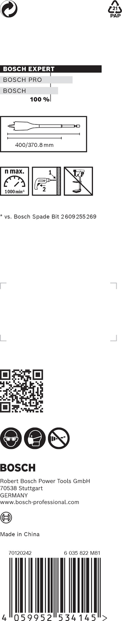 Upp till 3 gånger snabbare än Bosch 2609255269 flatfräsborr - Flatfräsborr är ett utmärkt tillbehör för elektriker och andra installations- och byggnadsarbetare. Tänk om de kunde vara ännu snabbare och mer effektiva? Med Bosch Tip Technology är det möjligt. EXPERT Self Cut Speed erbjuder de mest avancerade designerna för flatfräsborr, vilket gör det enkelt att använda och extra praktiskt för hantverkare inom tyngre arbetsområden. Boschs patenterade spiralspets drar in flatfräsborret i träet med bara ett lätt tryck från användaren, vilket är särskilt användbart vid borrning upp och ner eller i trånga utrymmen. Den avancerade skoveldesignen ger extra hög hastighet. Bosch EXPERT Self Cut Speed flatfräsborr fungerar lika bra i alla mjuka träslag och erbjuder effektivitet och bekvämlighet för hantverkare som behöver genomgående hål till kablar, rör och andra hårdvaruinstallationer. 1/4" sexkantsskaft för användning med trebacksborr och sexkantiga skruvdragarchuckar.