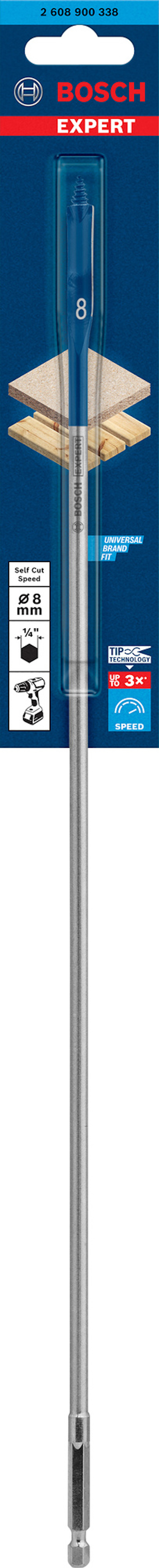 Upp till 3 gånger snabbare än Bosch 2609255269 flatfräsborr - Flatfräsborr är ett utmärkt tillbehör för elektriker och andra installations- och byggnadsarbetare. Tänk om de kunde vara ännu snabbare och mer effektiva? Med Bosch Tip Technology är det möjligt. EXPERT Self Cut Speed erbjuder de mest avancerade designerna för flatfräsborr, vilket gör det enkelt att använda och extra praktiskt för hantverkare inom tyngre arbetsområden. Boschs patenterade spiralspets drar in flatfräsborret i träet med bara ett lätt tryck från användaren, vilket är särskilt användbart vid borrning upp och ner eller i trånga utrymmen. Den avancerade skoveldesignen ger extra hög hastighet. Bosch EXPERT Self Cut Speed flatfräsborr fungerar lika bra i alla mjuka träslag och erbjuder effektivitet och bekvämlighet för hantverkare som behöver genomgående hål till kablar, rör och andra hårdvaruinstallationer. 1/4" sexkantsskaft för användning med trebacksborr och sexkantiga skruvdragarchuckar.