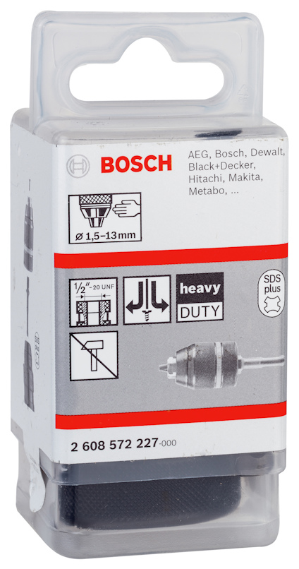 Maximal användarvänlighet - Snabborrchucken ger bekväm användning utan nyckel för maximal användarvänlighet. Den ger enkel och snabb fastspänning med ett tvåhandsgrepp utan nyckel och håller på ett säkert sätt borr med cylindriska skaft eller sexkantsskaft på plats. 2-hylsborrchuckar utan nyckel är tillgängliga med olika monteringar (1/2"–20, 3/8"–24, 5/8"–16, 1/4" utvändigt sexkantsskaft, B16 och SDS plus) och är kompatibla med de vanligaste borrmaskinerna utan spindellås. Kontrollera de tekniska specifikationerna för information om slagstyrka eller lämplighet för rotation moturs.