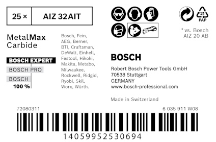 Håller upp till 50 gånger längre än Bosch AIZ 20 AB-blad - När härdade skruvar rostar eller fastnar på annat sätt är det enda alternativet att skära av dem helt jämnt utmed ytan. EXPERT MetalMax ger perfekta snitt även i härdad metall och är med sin utmärkt livslängd det perfekta tillbehöret för hantverkare som vill skära i hårda material med multiverktyg. EXPERT MetalMax är banbrytande inom Bosch Carbide Technology. Inte nog med att tänderna är tillverkade av en remsa med extremt hård metall som kan skära även i rostfritt stål, den har också en sofistikerad extra beläggning för maximal livslängd. Den plana kanten är optimerad för sågning, med minimal risk för att glida på skruvar eller rör. Du har upplevt multiverktygens makalösa förmåga att enkelt skära i och genom trä: Med Bosch EXPERT MetalMax-blad för multiverktyg får metall samma behandling. Bladet skär till och med genom härdade fönsterskruvar och armeringsjärn med lätthet. Starlock-fäste för optimal kraftöverföring och smidiga bladbyten på tre sekunder.