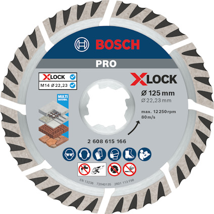 X-LOCK Standard for Universal 125 × 22,23 × 2 × 10 Tillförlitliga snitt - X-LOCK Standard for Universal diamantkapskiva är avsedd för pålitliga snitt i universalbyggmaterial. Dess optimerade diamant matris garanterar solida resultat tack vare skivans högkvalitativa standarder. Boschs diamantkompetenscenter i Schweiz garanterar dessa standarder genom att leverera konsekvent kvalitet om och om igen. X-LOCK kapskivor passar även på vinkelslipar av standardtyp. Det går snabbt och enkelt att byta kapskivor tack vare det nyckelfria X-LOCK-systemet. Klicka den på plats med X-LOCK – marknadens snabbaste system för byte av tillbehör. Passar även till vinkelslipar med mutter och gänga.