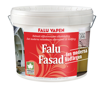 Falu Vapen Falu Fasad är en helmatt och helt diffusionsöppen alkydoljeemulsion som ser ut som och som man arbetar med en slamfärg/rödfärg och kan anläggas på alla trärena- samt de flesta tidigare målade underlag. 56110 A-bas, 10 liter. Läs mer
