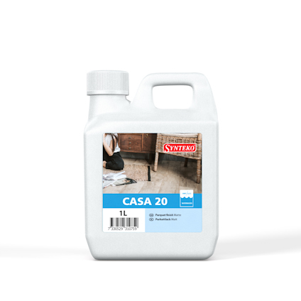 Synteko® CASA är en vattenburen 1-komponents polyuretan/akrylat-lack för trä- och parkettgolv i lätt trafikerad miljö. Lacken är keramiskt förstärkt tack vare enastående teknik. CASA är en lättarbetad polyuretan/akrylat-lack och som har en låg VOC-halt samt är NMP-fri. Lacken ger en bra vidhäftning för överlackering, samt en snabb tork & härdningstid. Låt lacken härda minst 24 tim. Gå inte på golvet under denna period. Fullt uthärdat senast efter 5 dygn.